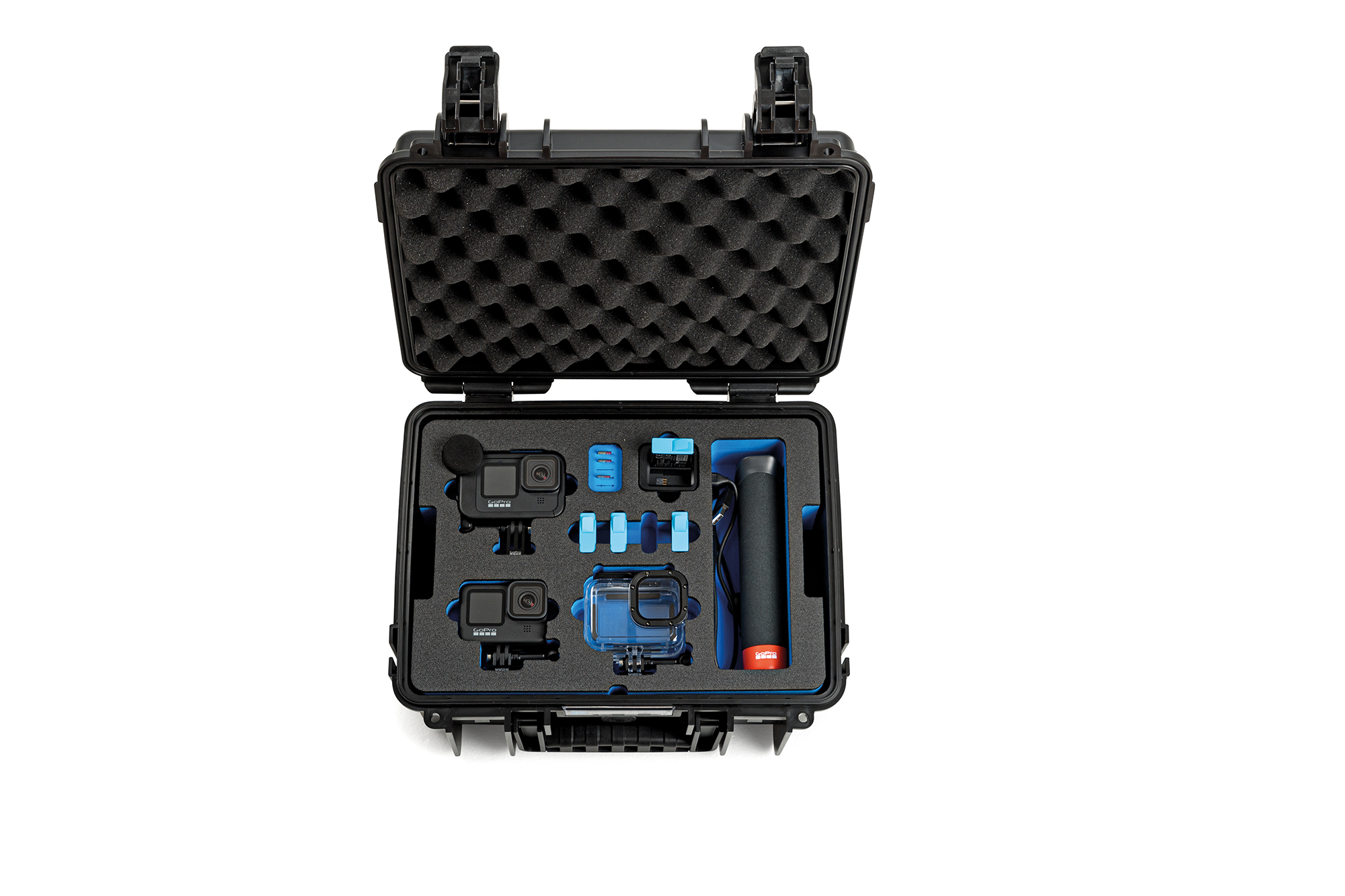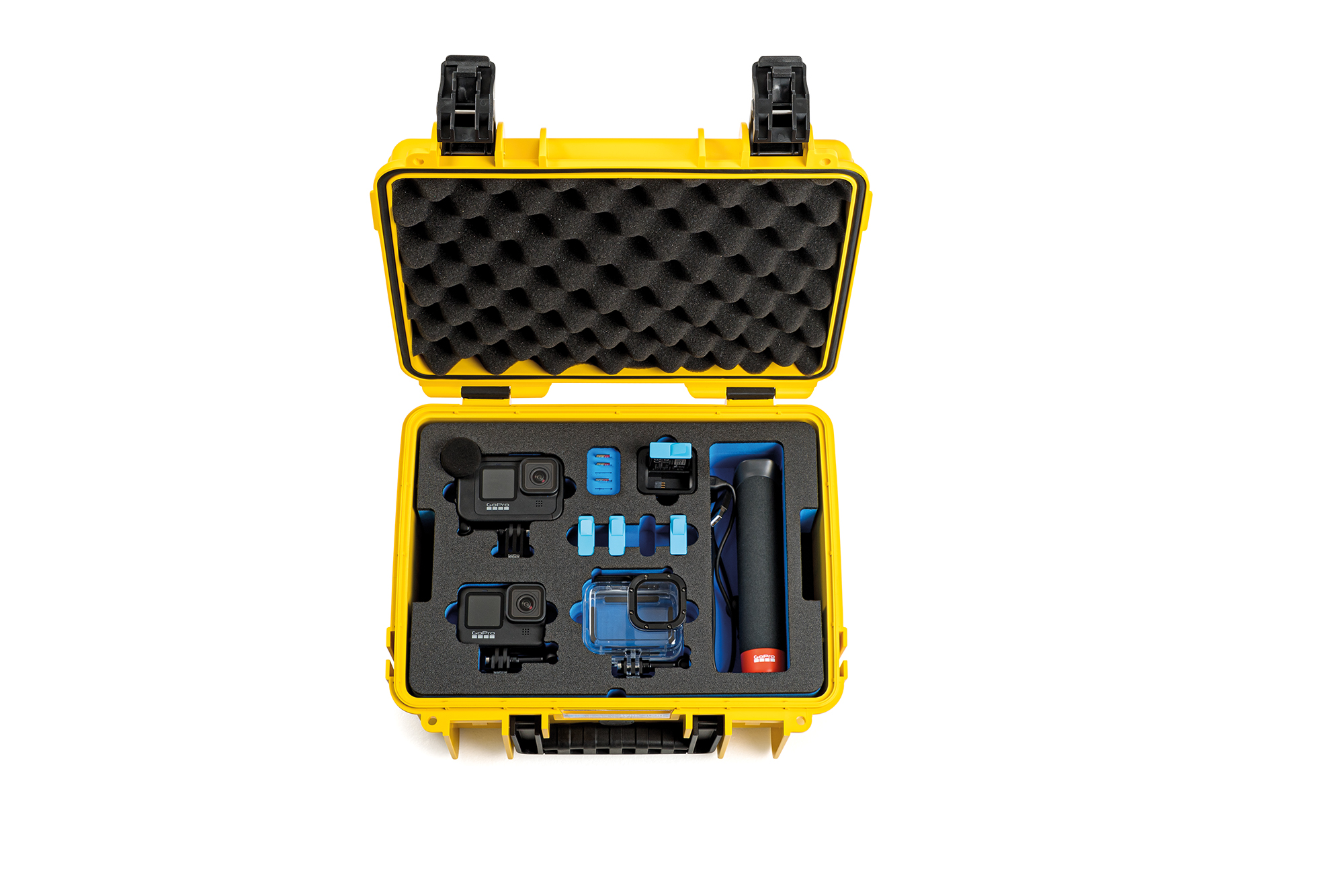 De outdoor cases van de kofferspecialist B&W International zijn ontwikkeld voor de zwaarste outdoor toepassingen en zijn onder extreme omstandigheden getest. Ze zijn stapelbaar, ontwikkeld voor een temperatuurbereik van -30 tot +80 °C en 100% waterdicht conform IP67, stofdicht, breukvast en onverwoestbaar. De medium buitenkoffer voor maximaal drie GoPro HERO Actioncams + accessoires! Dankzij het formaat en de twee op maat gemaakte schuimlagen biedt het voldoende ruimte voor je GoPro HERO camera's en de nodige accessoires: GoPro Media MOD, waterdichte behuizing, tot 7 batterijen, de dubbele batterijlader, tot 8 microSD-geheugenkaarten, montagebeugels, kabels en nog veel meer. Een reservecompartiment (195 x 60 x 60 mm) in de eerste laag en 3 reservecompartimenten (2 compartimenten elk 145 x 90 x 33 mm / 1 compartiment 305 x 108 x 33 mm) in de tweede laag biedt ruimte voor extra accessoires en het is mogelijk om twee batterijen direct in de case op te laden. Belangrijkste kenmerken van de B&W type 3000 outdoor.case voor GoPro Extreem stabiele koffer: schaal van polypropyleen (PP) Stapelbaar Stofdicht Temperatuurstabiel Waterdicht (IP67-classificatie) Luchtwaardig: automatisch drukvereffeningsventiel Eierkistschuim onder deksel Oogjes voor hangslot Binnenafmetingen: 330 x 235 x 150 mm Buitenafmetingen: 365 x 295 x 170 mm Gewicht: 1,9 kg Inhoud: 11,7 L Verkrijgbaar in drie kleuren: zwart, geel, oranje Optionele accessoires: schouderriem, dekselvak, nettas, muurbevestiging 30 jaar garantie