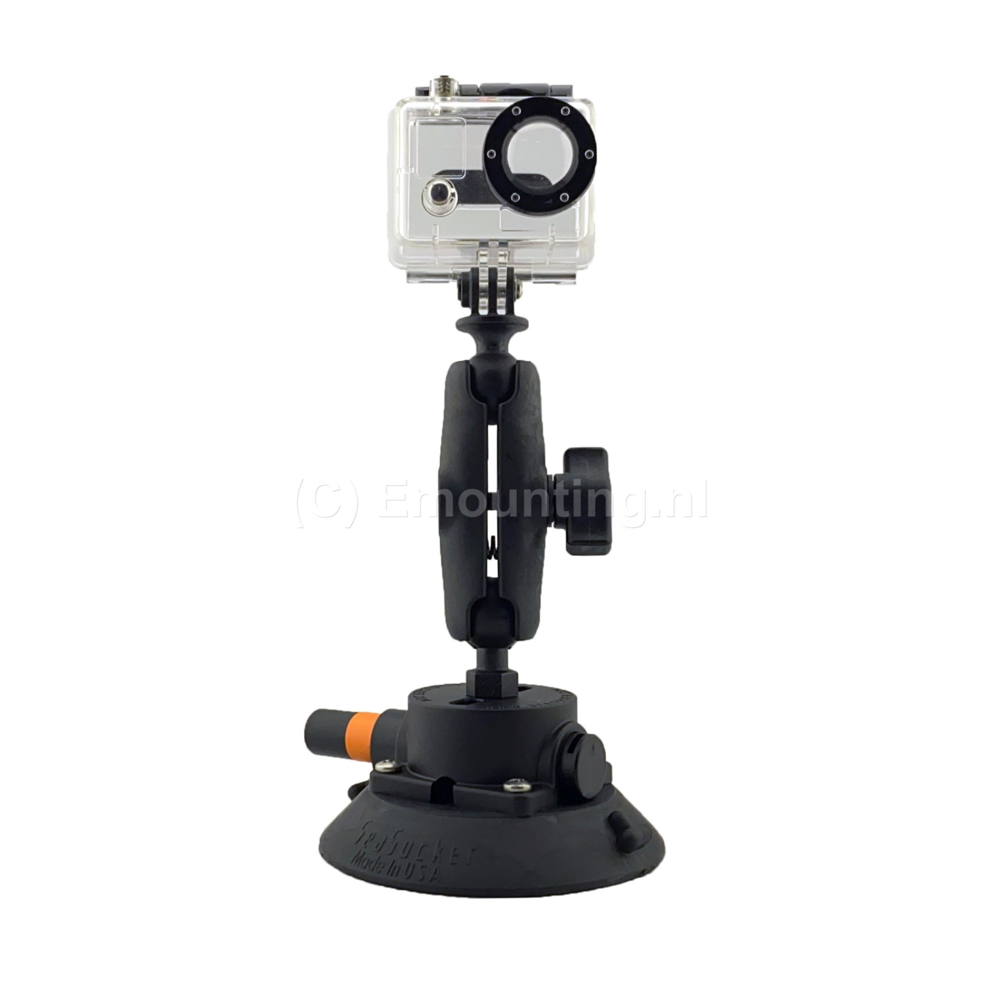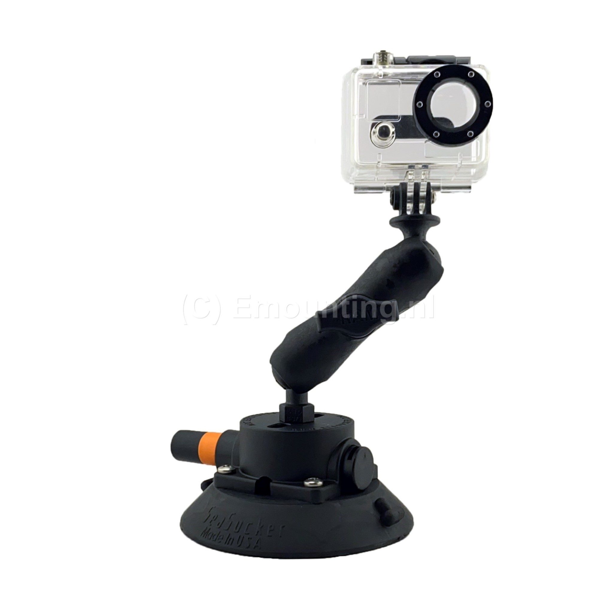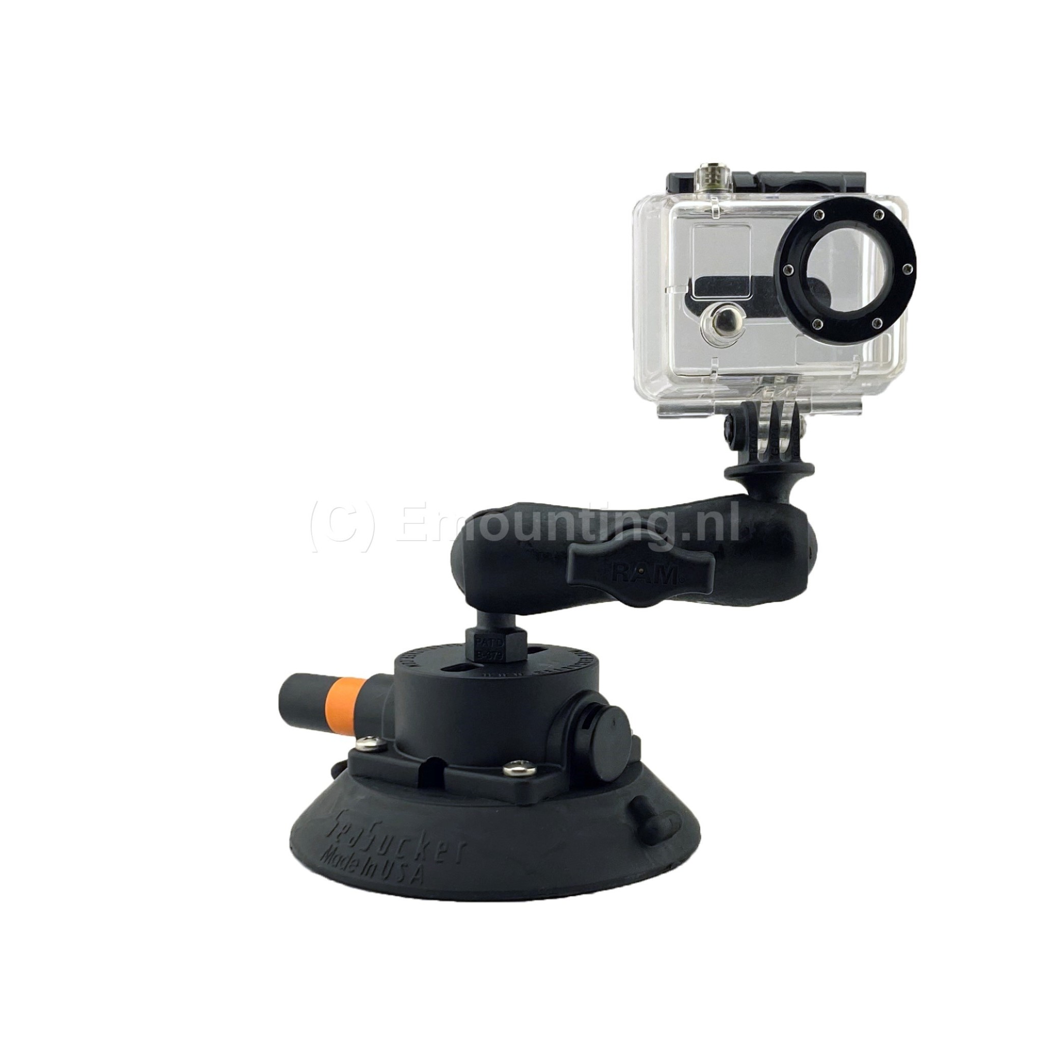 Seasucker's camerabevestiging is de droom van elke fotograaf - monteer je actioncam, DSLR en alles daartussenin stevig met deze krachtige 11,4cm vacuümbevestiging. De verstelbaarheid is te danken aan een RAM®-voet met een GoPro camera kogel; richt hem waar je wilt en draai de RAM-arm vast om deze op zijn plaats te vergrendelen. Seasucker zuignappen lenen zich voor een bijna oneindig aantal toepassingen. Het komt erop neer dat als je iets op een stijf, niet-poreus oppervlak moet bevestigen zonder gaten te boren, dit de beste manier is om dit te doen. De zuignappen van Seasucker zijn vooral bekend van de fietsdragers die o.a. door de Jumbo-Visma wiellerploeg worden gebruikt, maar zijn ook perfect om je fiets of skies op je Porsche mee te nemen. Daarnaast lenen ze zich ook uitstekend voor het bevestigen van een camera. Om het gemakkelijker voor je te maken om van deze Seasucker jouw oplossing te maken, hebben ze sleufgaten in de bovenkant voor het vastschroeven van wat je er ook op monteert plus een roestvrijstalen inzetstuk met schroefdraad (1/4-20/ zgn cameradraad). De 11,4cm Seasucker-vacuümmontage kan tot 45 kg trekken. Alle metalen onderdelen zijn van hoogwaardig roestvrij staal, zelfs de veren in de pomp, voor extra duurzaamheid in de elementen. Beschermkap inbegrepen. Zuignap met grote 11.4 cm diameter is voorzien van RAM Mounts kogel-klemarm systeem met kogel en 1/4-20 (camera-) uitwendige schroefdraad. Met het vacuumpompje bevestigt je de zuignap op rechte, niet-poreuze oppervlaktes. De rode band waarschuwt als het vacuum verloopt en er bijgepompt moet worden! Met het oplichten van de tab wordt het vacuum verbroken en kan de zuignap verwijderd worden. De Seasucker zuignap is los te koop, handig als je al een aantal RAM Mount producten hebt maar, de Nederlandse specialist op gebied van RAM Mounts, emounting.nl, heeft ook een complete set met alles er bij om direct met een GoPro camera te gebruiken.