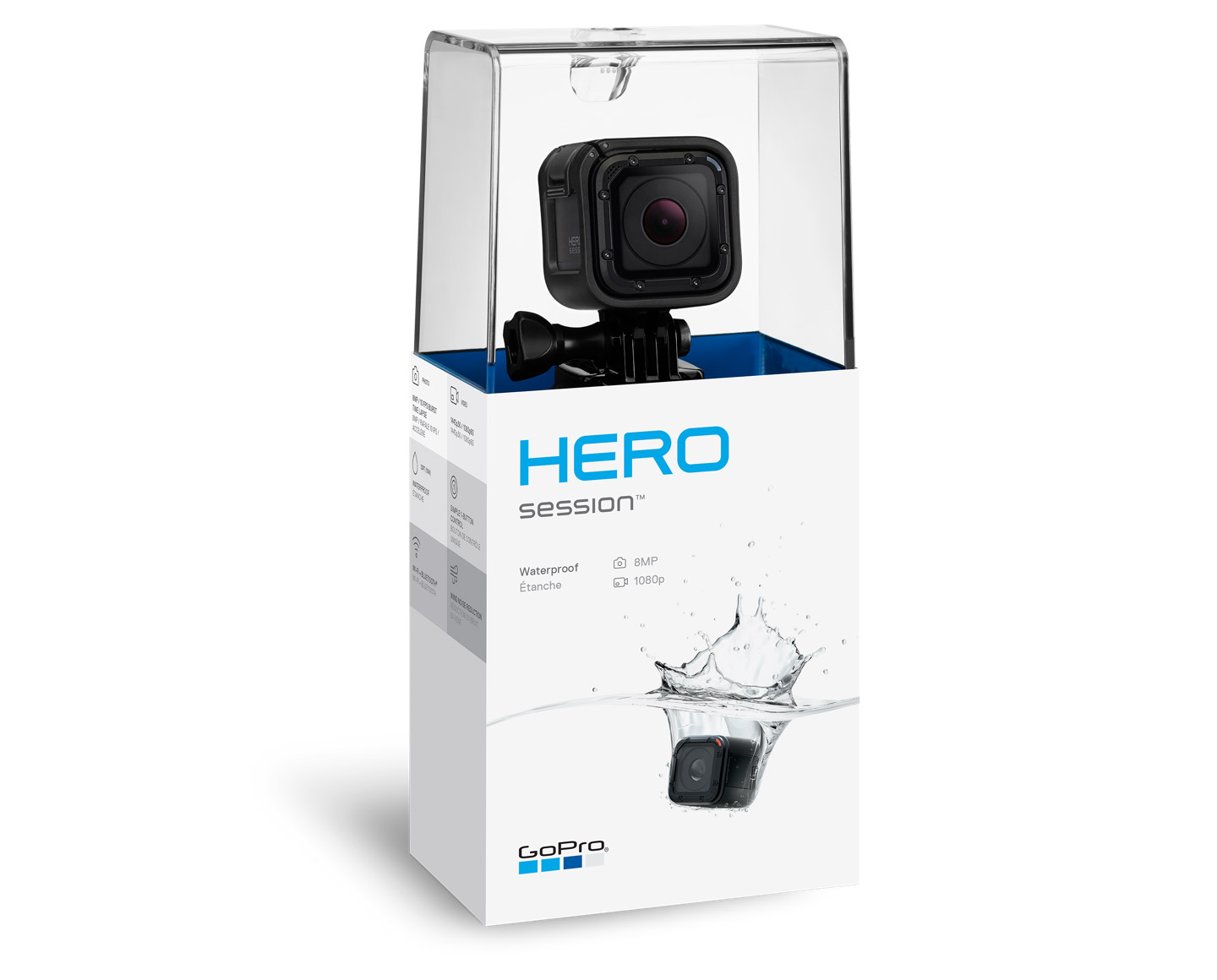 GoPro HERO Session: topprestaties in handpalm-formaat De kleinste en lichtste action cam van GoPro is de Hero Session. Met een gewicht van slechts 74 gram is deze kleine krachtpatser de kleinste van de reeks. Door het gewicht en formaat merk je bijna niet dat je hem draagt. Deze kleine krachtpatser filmt in 1080P Full HD met maar liefst 60 FPS en maakt geweldige foto’s van maarliefst 8 megapixels. De GoPro Hero Session kan zonder behuizing tot 10 meter onder water en beschikt over Wifi en Bluetooth om de camera te verbinden met de smart remote of App. Ook beschik de GoPro Hero Session over een dual microfoon welke enorm handig is bij snelle bewegingen zoals motorrijden, de GoPro Hero session schakelt zelf tussen de beide microfoons welke op de voor en achterkant zijn gepositioneerd om zo altijd de meest optimale geluidskwaliteit te behalen. Belangrijkste kenmerken van de GoPro HERO Session Waterdicht (10 meter) Ontworpen om de meest extreme omstandigheden aan te kunnen. Tot 10 meter waterdicht, zonder extra behuizing nodig te hebben. Krachtige foto’s Met 8MP single foto’s, 10fps burst foto’s, en 0,5-60 seconden Time Lapse foto’s. Superview Zorgt voor de meest indrukwekkende hoek om beelden op te nemen. One button control Met een enkele druk op de knop begint de camera automatisch video of foto’s op te nemen. Professionele videokwaliteit Met indrukwekkende 1440p30, 1080p60, en 720p100 settings. Auto low light Automatische aanpassing van framerate in donkere omstandigheden. Protune voor video Geavanceerde handmatige video functies voor professionele videoproducties. Wifi en Bluetooth Verbind de camera met de GoPro app of Smart Remote: pas je settings aan, of neem van een afstand op en bekijk je footage. Ingebouwde batterij Neem tot 2 uur op met deze oplaadbare accu. Dual microfoon Past zich automatisch aan wanneer er ruis ontstaat in bijvoorbeeld winderige omstandigheden. Highlight tag Markeer key momenten tijdens het opnemen voor gemakkelijk editen en delen. Aantal beelden per seconde 1440p-video met 30 fps 1080p-video met 60 fps 960p-video met 60 fps 720p-video met 100 fps Meegeleverde accessoires GoPro HERO Session camera Standaard frame Gebogen plakbevestiging Vlakke plakbevestiging Bevestigingsgesp micro-USB kabel
