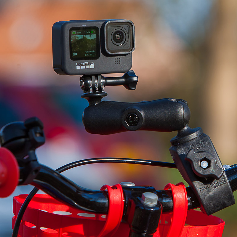 De RAM Mount Tough-Claw GoPro set bevat een stevige klem, extentie en bal met GoPro mount. Heel divers inzetbaar op bijvoorbeeld een motor, fiets, vanalles. Dit is tegenwoordig mijn go-to mount.